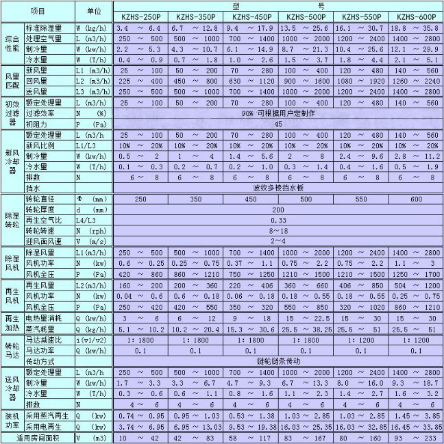 KZHS-□玻璃合片室型轉(zhuǎn)輪除濕機(jī)組技術(shù)性能