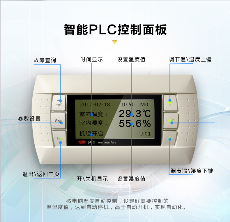 3、高性能電子電極加濕器:不滋生細(xì)菌,對室內(nèi)空氣無污染;對水質(zhì)無特殊要求,無需水處理;獨(dú)立加濕器控制板,自動定時(shí)換水清洗,延長使用壽命,能自動根據(jù)加濕要求控制水位及加濕電極電流,實(shí)現(xiàn)高精度控制,真正滿足高精度要求;
